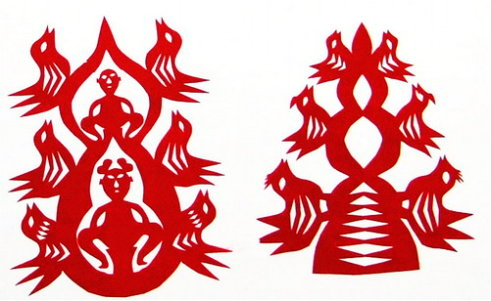和林格爾剪紙有著悠久的發(fā)展歷程,世世代代在這里生活的北方游牧民族開(kāi)創(chuàng)了這里的剪紙藝術(shù)。和林格爾歷史上有眾多民族在這塊土地上生息繁衍,是北方游牧民族和中原農(nóng)耕民族交匯融合的重要地區(qū)之一,先后有土方、鬼方、獫狁、樓煩、林胡、匈奴、突厥、鮮卑、烏桓、契丹、女真、蒙古、滿(mǎn)等北方民族駐牧;后又有清代著名的“走西口”——清朝向西北用兵,在和林格爾開(kāi)辟驛站,大力開(kāi)發(fā)西部,山西、陜西等地農(nóng)民紛紛來(lái)此開(kāi)荒,在此定居,農(nóng)耕文化與草原文化再一次融合。這些為和林格爾剪紙的創(chuàng)作提供了肥沃的土壤;繼而逐漸形成了和林格爾剪紙獨(dú)具特色的藝術(shù)形態(tài)。目前,和林格爾縣 13 個(gè)鄉(xiāng)鎮(zhèn),4 萬(wàn)農(nóng)戶(hù),僅有 18 萬(wàn)多人口的和林格爾縣擁有業(yè)余剪紙人員超過(guò) 5000 人,年齡最大的近百歲,最小的僅有七八歲。