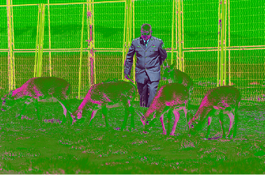 在可可西里國家級(jí)自然保護(hù)區(qū)索南達(dá)杰保護(hù)站,站長(zhǎng)趙新錄與藏羚羊在一起(9月28日攝)。新華社記者 李占軼 攝