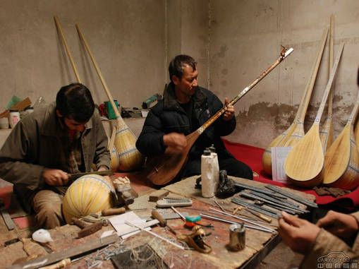“冬不拉”是哈薩克族的撥弦樂器,現(xiàn)在使用的冬不拉有樂隊使用的高音、中音、和低音冬不拉,為凸底,琴腹梨形,多為紅松木,銅、骨制品,采用銅絲弦,自成一組,可演奏豐富多彩的音樂作品,也可用來伴奏歌舞。高、中音冬不拉也可以獨奏,也可彈唱。另有民間冬不拉為平底樺木制,經(jīng)纏絲弦為音品,琴腹為鏟形,張兩根弦,用右手彈奏,為哈薩克牧民家中必備的樂器,自彈自唱或獨自演奏?!榜R和冬不拉是哈薩克人民的翅膀”。哪里有帳篷,哪里就有冬不拉的琴聲。