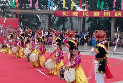 象帽舞是朝鮮族富有代表性的一種舞蹈形式,深受當(dāng)?shù)爻r族居民喜愛。每逢節(jié)日、慶典等特殊日子,人們就跳起歡快的舞蹈,搖動色彩繽紛的象帽,線條流暢的長長飄帶旋轉(zhuǎn)如風(fēng),在舞者周圍畫出各種光輝耀眼的美妙彩環(huán),獨具特色的舞蹈體現(xiàn)了朝鮮族人民在勞動、生活中的喜悅之情和活潑大方的民族氣質(zhì)。