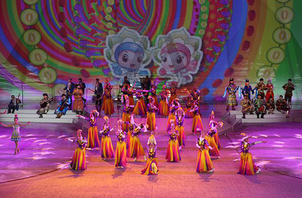 2016年1月20日,為期11天的第十三屆全國(guó)冬季運(yùn)動(dòng)會(huì)在烏魯木齊冰上運(yùn)動(dòng)中心速滑館拉開大幕。開幕式由體育儀式、文體表演和點(diǎn)燃主火炬塔三個(gè)部分組成。在文體表演章節(jié),承擔(dān)本次開幕式文體表演與伴舞任務(wù)的新疆藝術(shù)學(xué)院200名學(xué)生與來自新疆各民族的文藝工作者一起,為觀眾獻(xiàn)上了一臺(tái)精心策劃和編排、以“冰雪天山陽(yáng)光絲路”為主題的精彩表演。參加開幕式文體表演的舞蹈系2014級(jí)、2015級(jí)學(xué)生,大部分是第一次參加國(guó)家級(jí)的大型活動(dòng),他們克服嚴(yán)寒,用自己的實(shí)際行動(dòng)為精彩冬運(yùn)會(huì)助力添彩