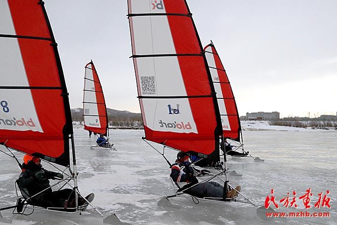 當地群眾體驗冰帆運動的無限樂趣。