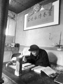河西寶卷國家級傳承人代興位在家抄寫寶卷。