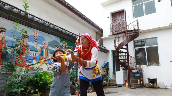傳統(tǒng)文化時(shí)時(shí)學(xué),白族舞蹈代代傳。小小的霸王鞭看似簡(jiǎn)單,里面卻包含了白族人民田間勞作的智慧。用自己的努力,言傳身教地教授霸王鞭,這愚公移山般的精神也是傳承人的智慧。“今天下午6點(diǎn),我還要去江尾一趟,教他們的繞三靈團(tuán)隊(duì)跳霸王鞭”,何松康說(shuō)。