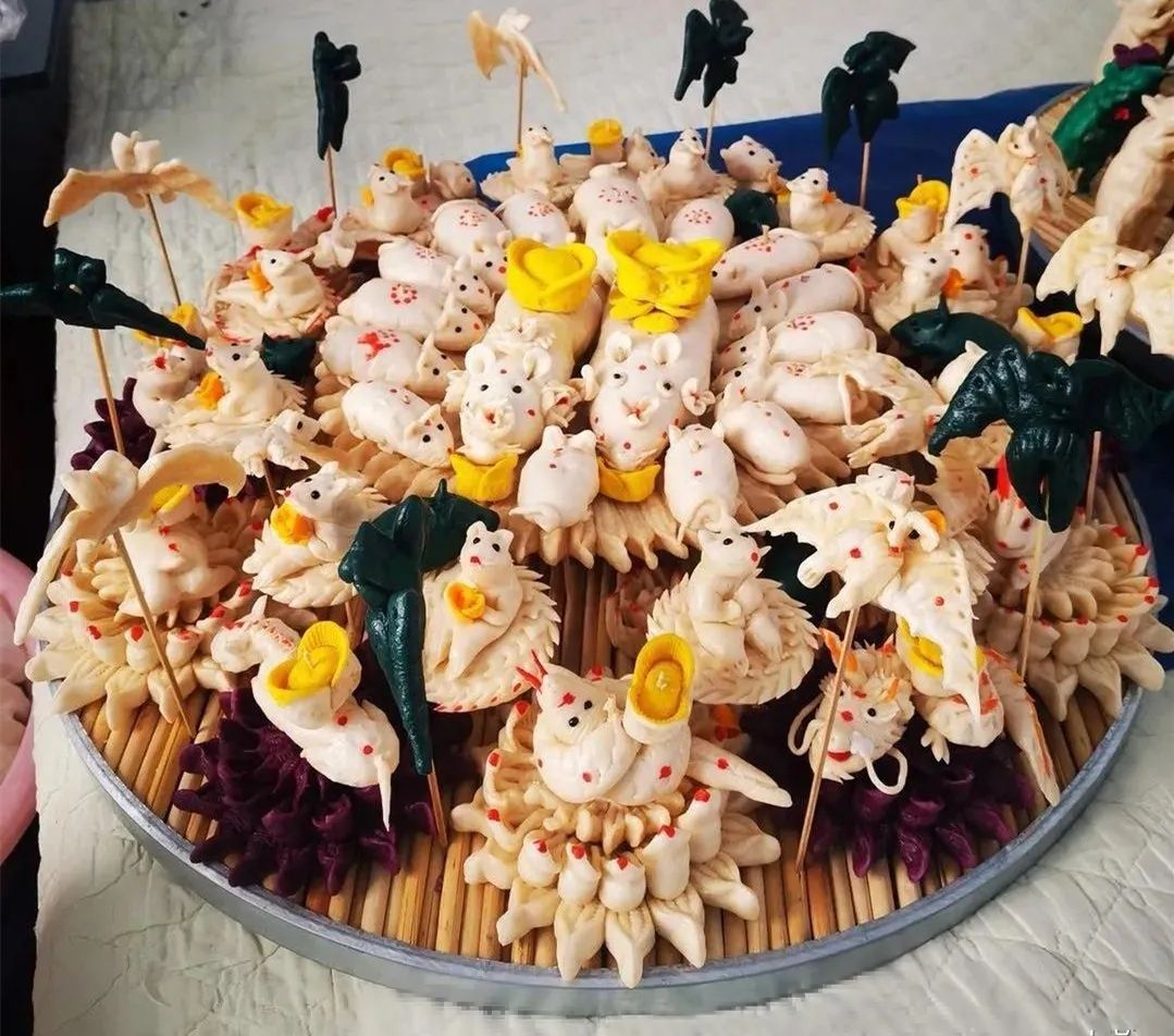 面塑,俗稱(chēng)捏面人。在呼和浩特市托克托縣地區(qū)最早就用面粉為主料,用手和簡(jiǎn)單的工具捏出各種造型的面制品,然后上籠蒸熟,常用來(lái)祭祀、供奉先人、送人和人生儀禮。托克托縣地區(qū)面塑制品主要有面人、棗山山、寒燕燕、面鎖等。