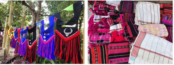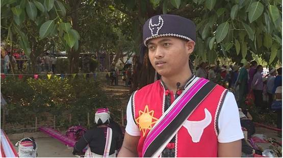 翁嘎科魏明介紹:“佤族男服飾以黑或者與紅、黑白、黑紅為搭配,女服飾裙子是純手工藝以黑白、黑紅為主基調(diào), 頭飾是用銀白色的頭飾進(jìn)行裝飾,裹著一層類似于項(xiàng)鏈一樣的飾品,最原始的頭飾還是用黑布裹起來的,演變到現(xiàn)在的話還需要做一些裝飾。”