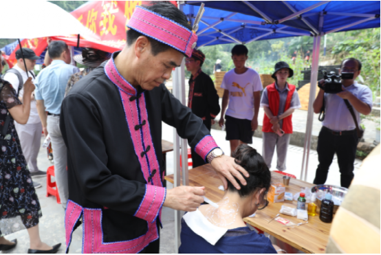 本次活動以2020年“文化和自然遺產(chǎn)日”的“非遺傳承,健康生活”為主題,重點圍繞傳統(tǒng)醫(yī)藥項目保護,普及“非遺”知識和健康生活理念,營造全社會共同參與、關注和保護傳承優(yōu)秀傳統(tǒng)文化濃厚氛圍而開展。邀請十位瑤醫(yī)藥傳承人帶領40多位瑤醫(yī)弟子各顯神通,在現(xiàn)場開展非遺項目義診活動,為游客免費問疹,展示泡藥療法、針灸療法、燈草療法、坐浴療法、拉伽通灸療法等10種技法。瑤寨里每一戶人家拿出拿手絕活在自家進行現(xiàn)場展示,黃泥鼓制作、樹葉豆腐制作、瑤族織繡技藝、釀酒技藝、舂糍粑、原創(chuàng)歌曲展示等,豐富多彩的各種技藝,讓游客流連忘返。