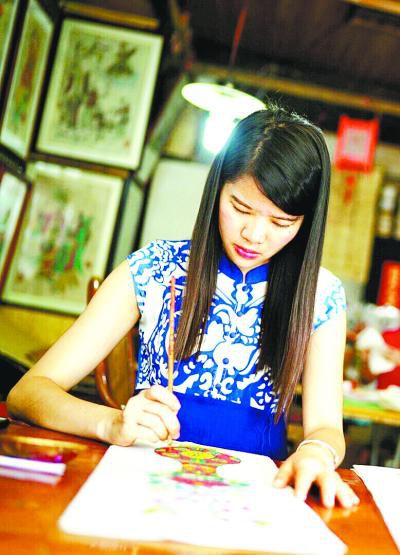 復(fù)業(yè)后,年畫鋪的生意和馮炳棠的生活一樣平平淡淡。直到2014年,一位活潑開(kāi)朗的姑娘的到來(lái),百年老鋪煥發(fā)了新的活力。這位姑娘正是劉鐘萍。