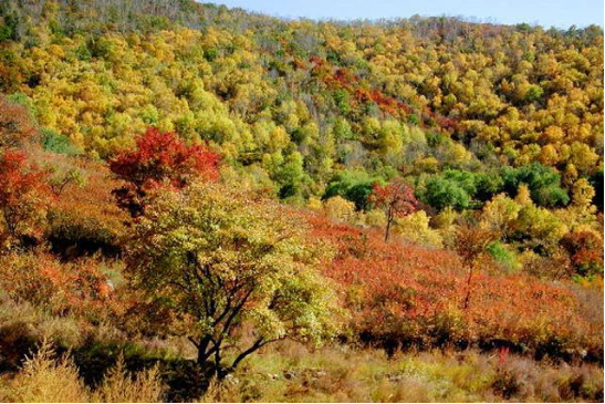 春夏之時,各種花木相繼開放,形成了山花爛漫的自然植物景觀,游人漫步山間,習習涼風吹來,暑氣盡去盡情領略大好河山的美妙景致,入秋,色葉木和果木顯露出其成熟的姿態(tài),紅的葉子、黃的葉子、紅的果實成片出現,間以綠色常綠樹,如畫家筆下的油畫,具極強的藝術感染力。山村田野一派豐收景象,梟梟炊煙升上天空,犬吠雞鳴,田園氣息濃重,讓人暇思,使人癡迷。各種果樹令游人一飽口福,盡享大自然予人的恩賜。