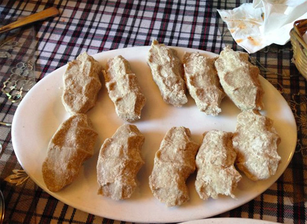 糌粑是藏族牧民傳統(tǒng)主食之一。“糌粑”是炒面的藏語譯音,它是藏族人民天天必吃的主食,在藏族同胞家作客,主人一定會給你雙手端來噴香的奶茶和青稞炒面,金黃的酥油和奶黃的“曲拉”(干酪素)、糖疊疊層層擺滿桌。糌粑是將青稞洗凈、晾干、炒熟后磨成的面粉,食用時用少量的酥油茶、奶渣、糖等攪拌均勻,用手捏成團即可。它不僅便于食用,營養(yǎng)豐富、熱量高,很適合充饑御寒,還便于攜帶和儲藏。