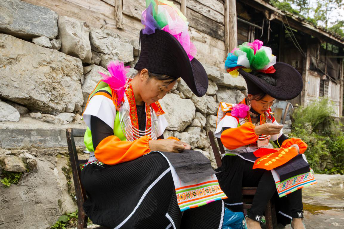 批林村除了傳統(tǒng)民居之外,自然還有屬于他們的傳統(tǒng)服飾。批林村的男子傳統(tǒng)服飾較為簡(jiǎn)單,主要以青藍(lán)色斜襟長(zhǎng)衫為主,頭飾用六米長(zhǎng)的布條圍成的帽子。在批林村鬼師的穿戴中,與眾不同的是,鬼師還會(huì)外披一件亮黃色大衣,胸前帶有銀圈。