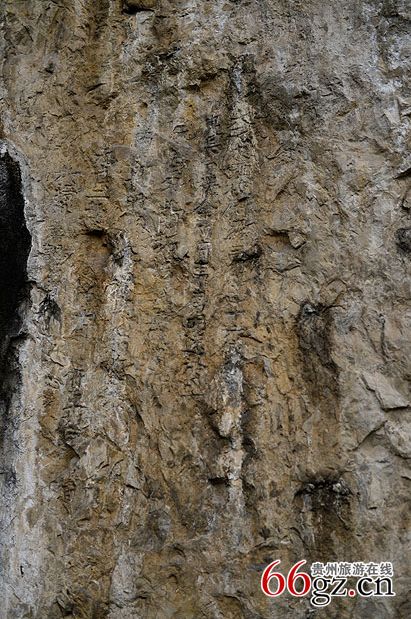 金山洞摩崖是貴陽市花溪區(qū)最早的摩崖石刻,也是貴州最早的摩崖石刻之一。該摩崖石刻位于燕樓鄉(xiāng)東北三里的金山洞巖壁上。其山上豐下儉,古人利用自然山形,在可避風(fēng)雨的洞壁上摩巖、題刻賦詩作畫。整個(gè)摩崖面積通高140厘米,寬74厘米;自右至左豎行排列,共6行82字。據(jù)系楷書陰刻,書法古樸流暢,具有較高的歷史價(jià)值。